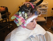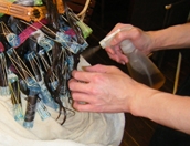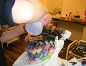 髪の状態に合わせて調合した栄養分をカラー剤と一緒に髪の中に入れていきます。