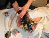 髪表面に残っている色素と栄養分を、もう一度水分補給しながら完全に髪内部に浸透させていきます。